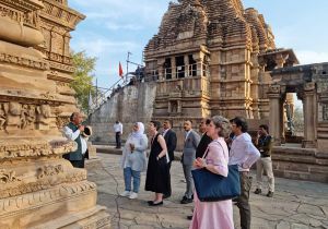 विदेशी मेहमानों ने पश्चिमी मंदिर समूह की स्थापत्य कला को निहारा