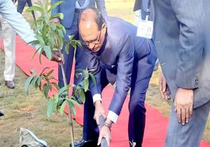मुख्यमंत्री चौहान ने इंदौर में रेसीडेंसी कोठी गार्डन में रूद्राक्ष का पौधा लगाया