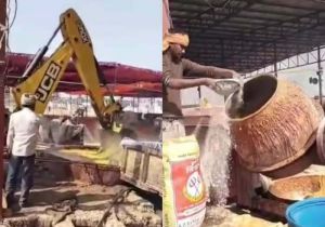 दंदरौआ धाम महाप्रसाद के लिए ,JCB से बन रही सब्जी, मिक्सर से गूंथा जा रहा आटा