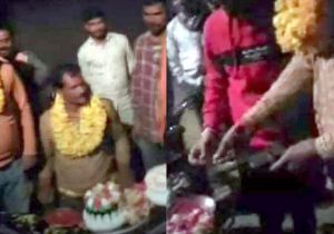 अवैध कट्टे से सरपंच ने जन्मदिन का काटा केक , वीडियो वायरल होने पर मचा बवाल