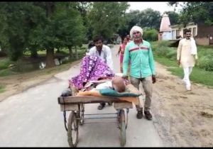 हाथ ठेले पर पिता को लिटाकर 6 किलोमीटर तक ठेले को धकेलता रहा मजबूर बेटा