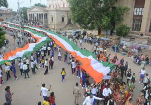 1111 मीटर का तिरंगा लेकर बच्चों ने निकाली यात्रा