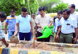 निगमायुक्त कन्याल ने डिवाइडर पर रोपे पौधे
