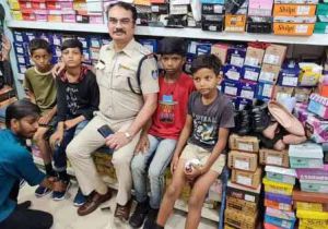 पुलिस का एक मानवीय चेहरा, थाना प्रभारी ने गरीब बच्चो को पहनाये जूते
