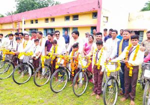 जिला पंचायत अध्यक्ष ने किया 14 विद्यार्थियों को निःशुल्क सायकिल का वितरण