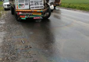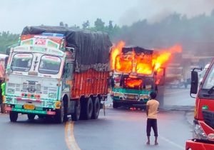 गणपति घाट पर चलते ट्रक में लगी भीषण आग