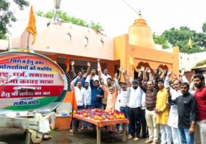 राष्ट्र धर्म समरसता तिरंगा कावड़ यात्रा के लिए 75 सिद्ध स्थलों का जल कलश वितरण हुआ