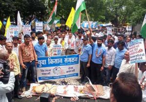 लहसुन व प्याज की अर्थी लेकर निकले मालवा के किसान