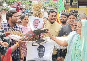 MP में अधीर रंजन चौधरी के बयान का विरोध, महिलाओं ने पुतले पर बरसाए चप्पल-जूते