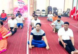 अंतर्राष्ट्रीय योग दिवस पर भाजपा कार्यकर्ताओं को सामूहिक रुप से योगाभ्यास कराया