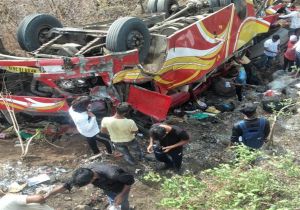 इंदौर में 50 फीट गहरी खाई में गिरी यात्रियों बस,6 लोगों की मौत