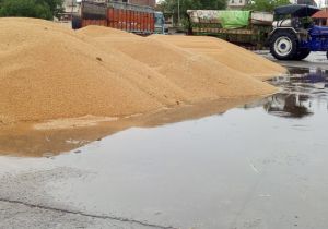 आफत की बारिश, मंडी में खुले में रखा हजारों क्विंटल गेहूं बारिश में भीगा