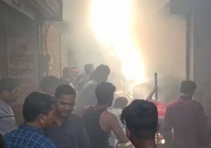 खंडवा में फलों के गोदाम में लगी आग, दो दुकानें जलीं