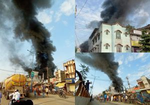 सेंधवा में टायर दुकान व् गोदाम में लगी भीषण आग