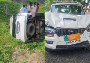 विधायक देवेंद्र वर्मा की कार गिरी खाई में, बाल-बाल बचे