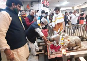 गर्भ गृह में गंदगी देख कर नाराज हुए सिंधिया