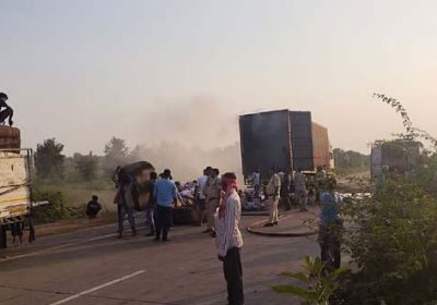 कटनी ने चलते ट्राले में लगी आग, लाखों का माल जलकर ख़ाक