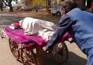 रीवा में बीमार पत्नी को ठेले पर अस्पताल ले गया पति
