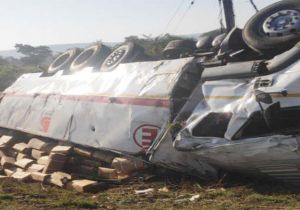 नागपुर NH पर विस्फोटक सामग्री से भरा कंटेनर पलटा, चालक घायल
