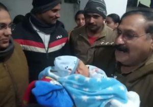कड़कड़ती ठण्ड में नवजात बच्ची को अनजान घर के बहार छोड़ भागे दंपति, पुलिस ने चाइल्ड हेल्पलाइन को सौंपा