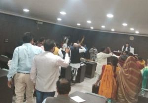 महापौर ने परिषद का किया बहिष्कार, धरने पर बैठीं