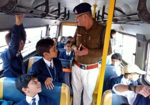 सिंगरौली : यातायात पुलिस द्वारा स्कूलों में संचालित बसों का किया गया औचक निरीक्षण