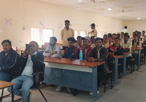स्वयं सिद्धा स्वावलंबी ट्रेड फेयर के संबंध में युवाओं को दी जा रही जानकारी