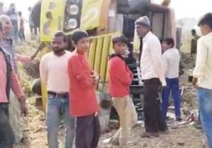 रीवा में सर्विस बस अनियंत्रित होकर बस पलटी, 12 से अधिक लोग घायल, तीन की हालत गंभीर
