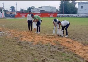 बदहाली की हाल रो रहा अमरपाटन स्टेडियम, नगर परिषद की फूटी पाइप लाइन से बना तालाब