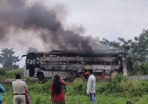 चौरई - चांद बायपास पर यात्रियों से भरी बस में लगी आग