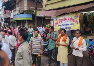 विश्व हिंदू परिषद ने नगरवासियो को भुजरिया देकर दी शुभकामनाएं