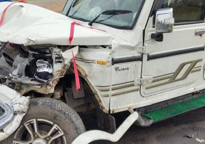 हाईवा और बोलेरो वाहन में जोरदार भिड़ंत बरगवां थाने की घटना