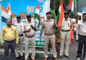 थाना प्रभारी अमिलिया के नेतृत्व में निकाली गई भव्य तिरंगा यात्रा