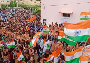 महाविद्यालय द्वारा निकाली गई विशाल तिरंगा रैली