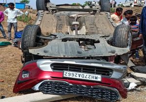 कार अनियंत्रित होकर मोटरसाइकिल पर पलटी, दो की मौके पर मौत