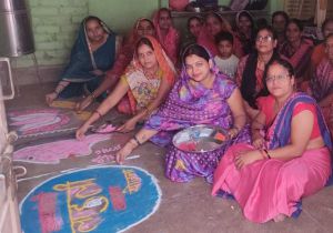 लाड़ली बहना योजना के लिए महिलाओं ने सजायी आकर्षक रंगोली