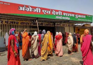 शराब दुकान बंद कराने डंडे-लाठियों के साथ मैदान में उतरी महिलायें