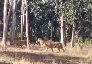 सतपुड़ा रिजर्व में 4 शावकों के साथ निकली बाघिन