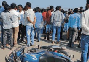 खटखरी हाईवे पर ट्रेलर ने बाइक सवार तीन लोगों को रौंद