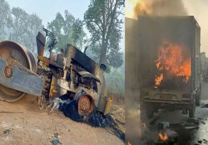 नक्सलियों की बड़ी वारदात, सड़क निर्माण में लगी मशीनों में लगाई आग,10 दिसंबर को बंद का आह्रवान