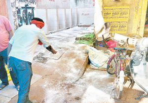 प्रतिमा पंडालों के आसपास कीटनाशक दवा का छिड़काव