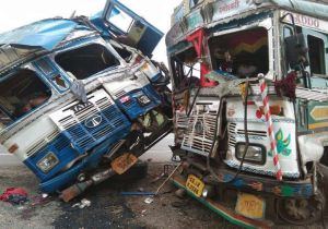 ट्रक व पेट्रोल भरे टैंकर की टक्कर, टैंकर चालक की मौत