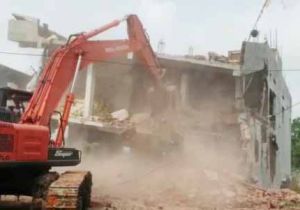 भेड़ाघाट पर बन रहे अवैध ड्यूपलेक्स को प्रशासन ने तोडा