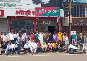 जबलपुर में व्यापारियों का फूटा गुस्सा, शराब की दुकानों के सामने धरना-प्रदर्शन