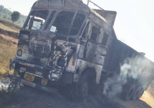 सड़क निर्माण में लगे एक ट्रक और 2 ट्रैक्टरों काे फूंका, पुलिस कर रही जंगल में सर्चिंग