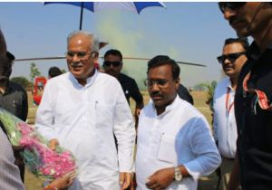मुख्यमंत्री का हेलीपैड पर भव्य स्वागत