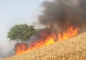 खेत में लगी भीषण आग, 25 एकड़ गेहूं की फसल समेत तीन मकान चपेट में
