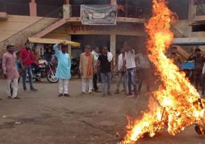 कांग्रेस पार्टी के नेता आदिवासी समुदाय के व्यक्ति को अभद्र भाषा का प्रयोग को लेकर भारतीय जनता पार्टी मंडल ने जलाया पुतला