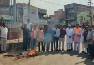 नेता प्रतिपक्ष गोविंद सिंह का बयान संपूर्ण जनजातिय वर्गो का अपमान – देव कुमार भाजपाइयों ने फूंका गोविंद सिंह का पुतला