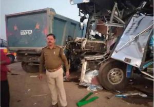 रीवा में बेंगलुरु लौट रही बस अनियंत्रित होकर डंपर से टकराई ,10 तीर्थयात्री घायल